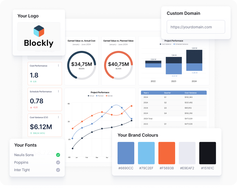 Wyn BI는 강력한 화이트 라벨링 기능을 통해, UI부터 로고와 색상까지 기업 고유의 브랜드 정체성에 맞춘 BI 환경을 제공합니다.